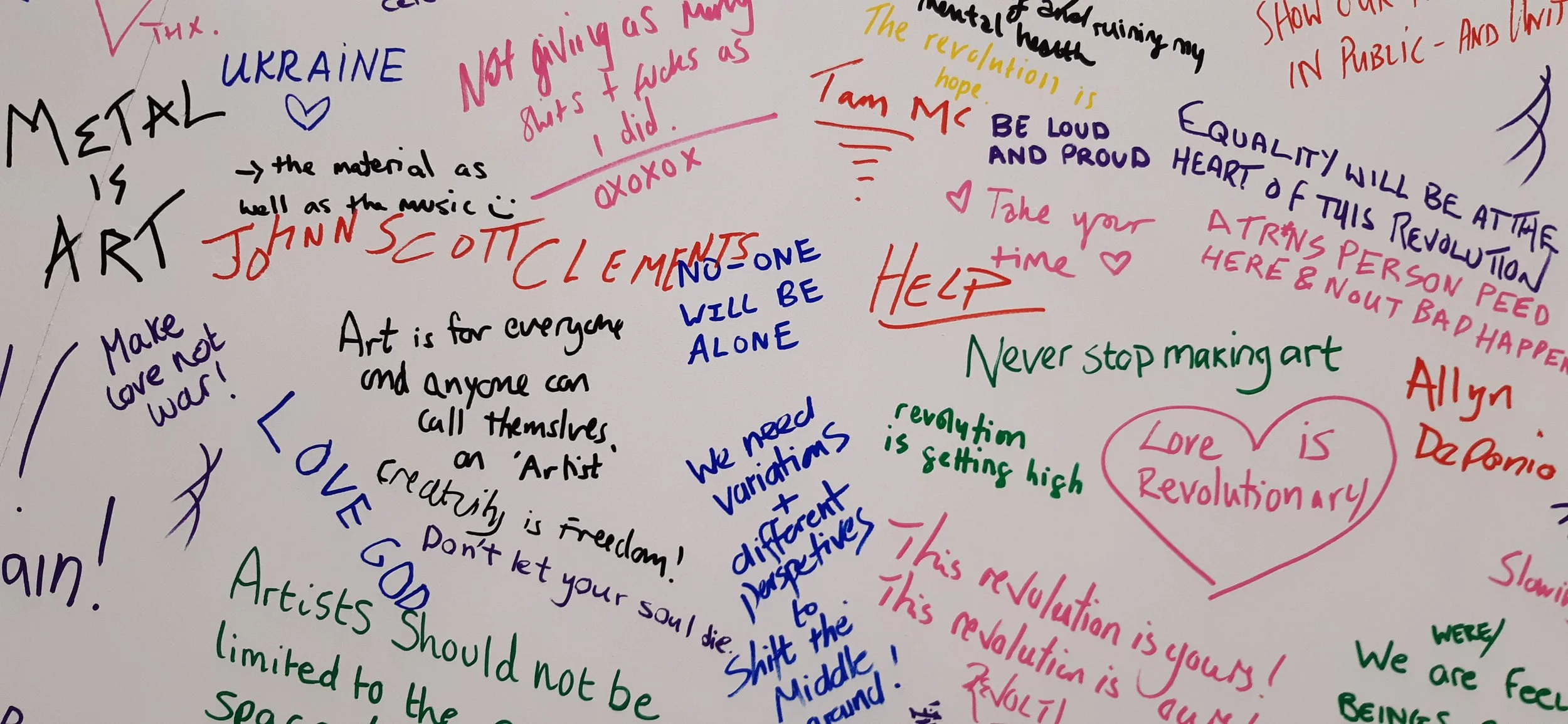 During the exhibition visitors were invited to add to the manifesto around the room.