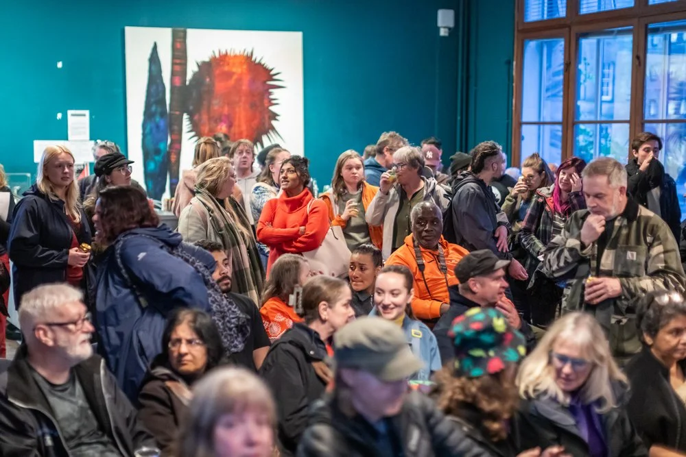 A crowd of people seen, seated and standing in the Library Gallery during the 2024 launch event